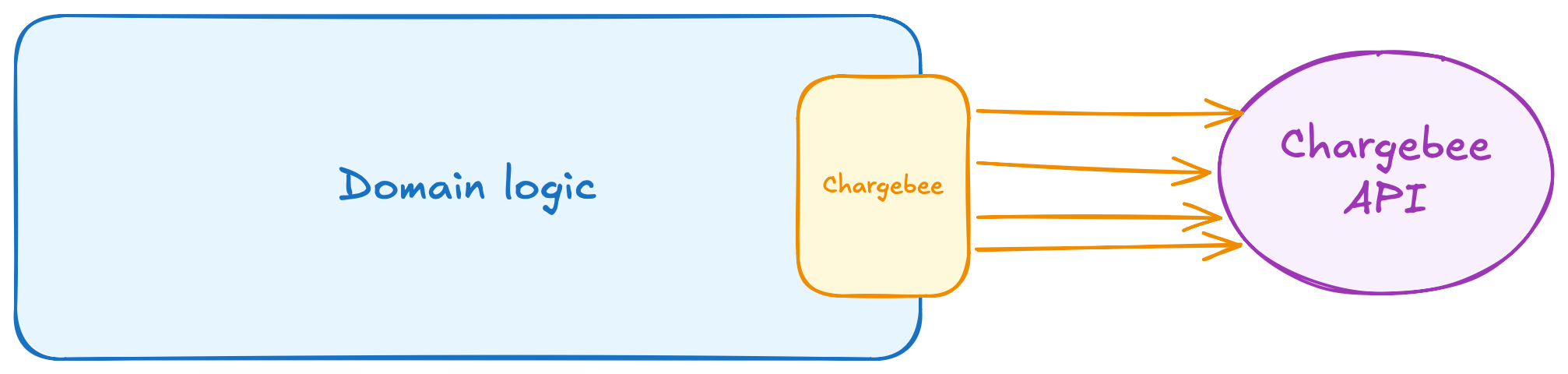 There was a lot of moving around, and along the way, I needed to separate any business logic around those calls. The goal is to replace that facade in tests, so I wanted as little business logic to be mocked, and preferably only the Chargebee integration.